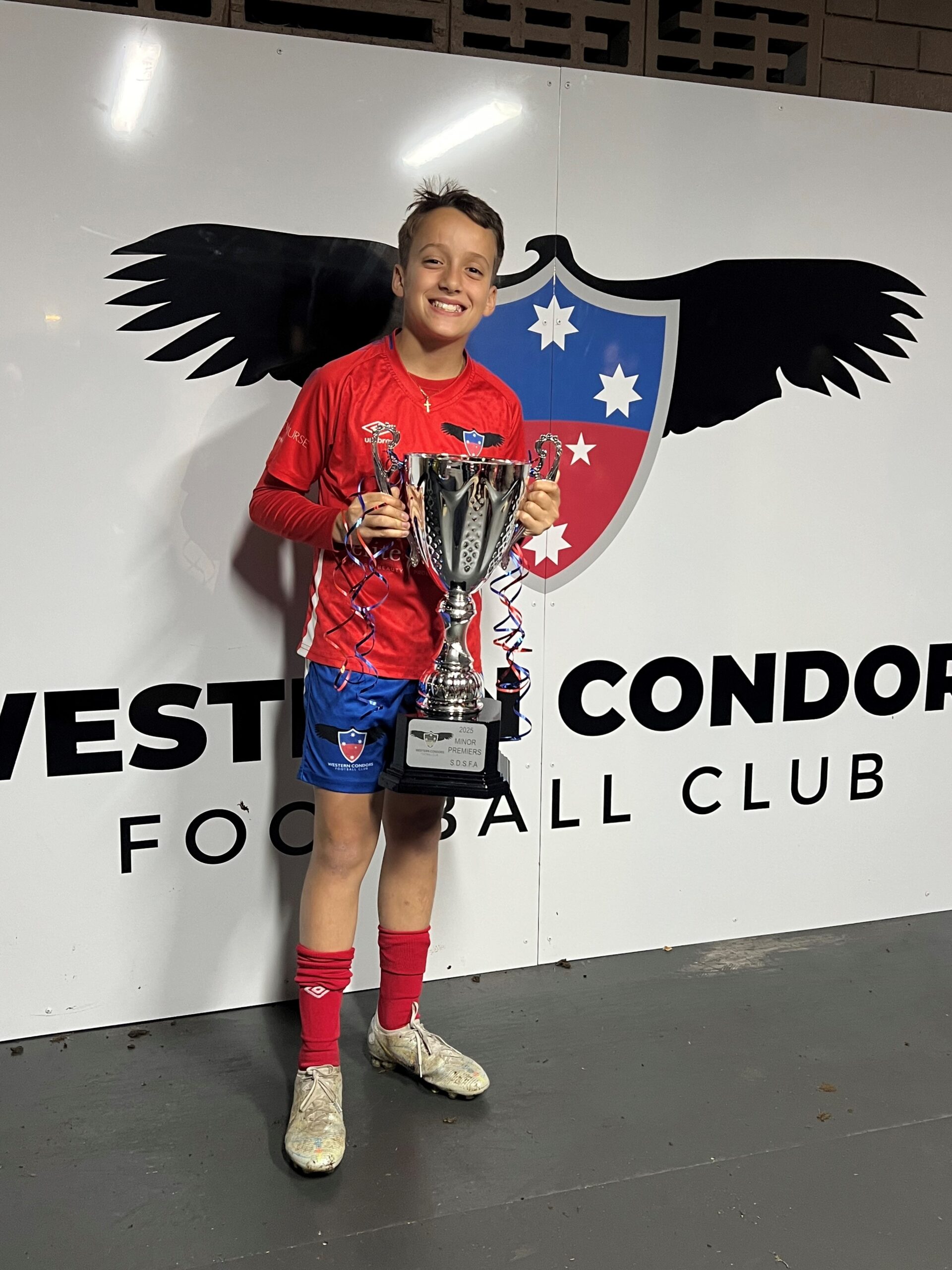 A massive congratulations to Rocco P, who finished his soccer season with an incredible grand final win against Marconi, with a commanding 5–1 victory! Rocco plays for the Western Condors and takes his soccer very seriously — his commitment and passion were on full display throughout the season. Not only did his team win the grand final, but they also secured the Minor Premiership for the U11 Division 1 competition. Well done, Rocco — an amazing achievement!