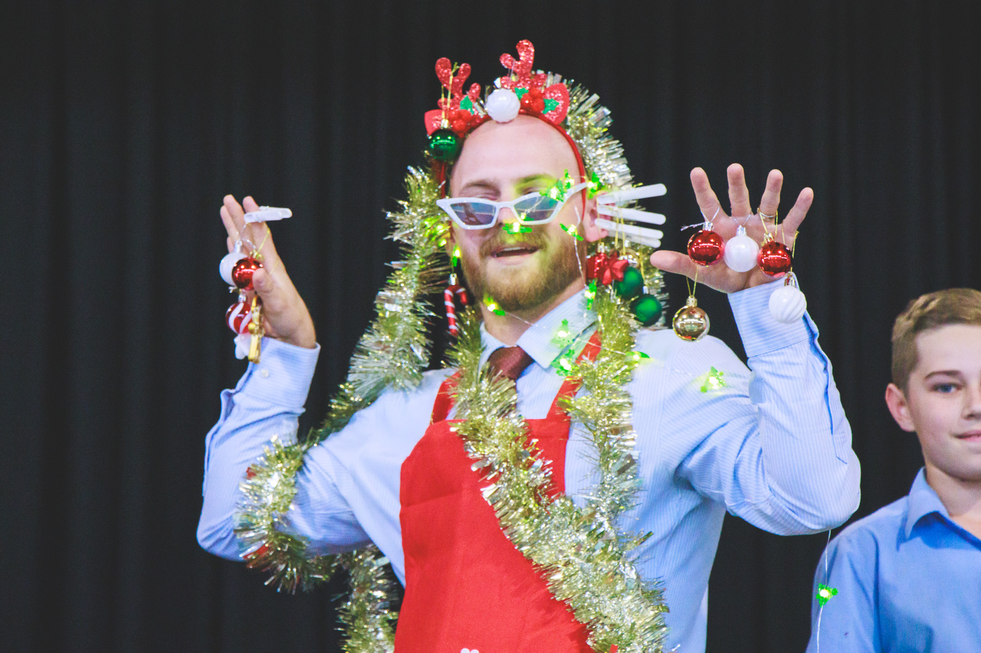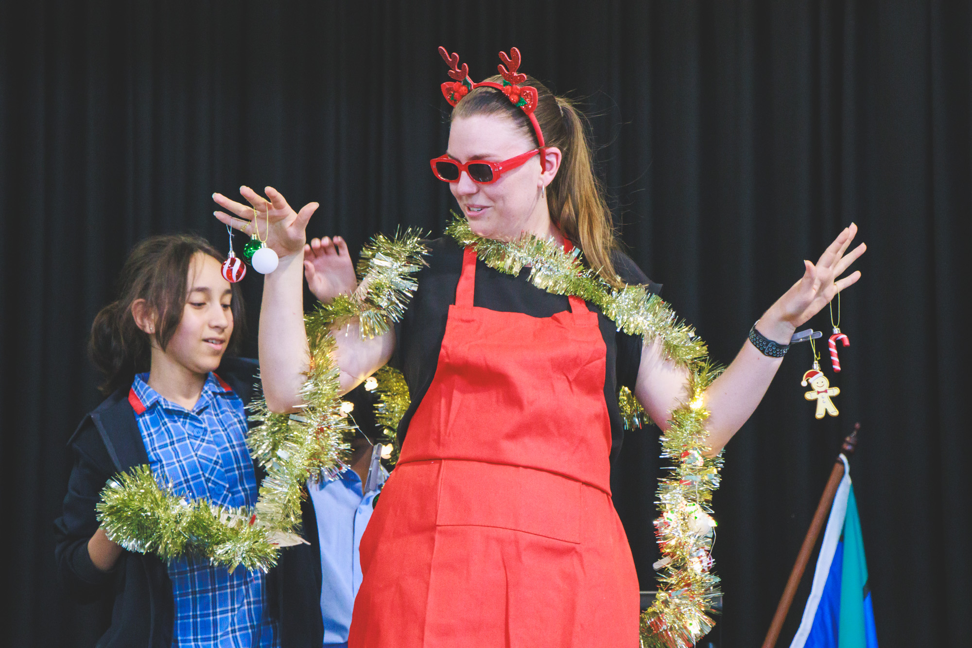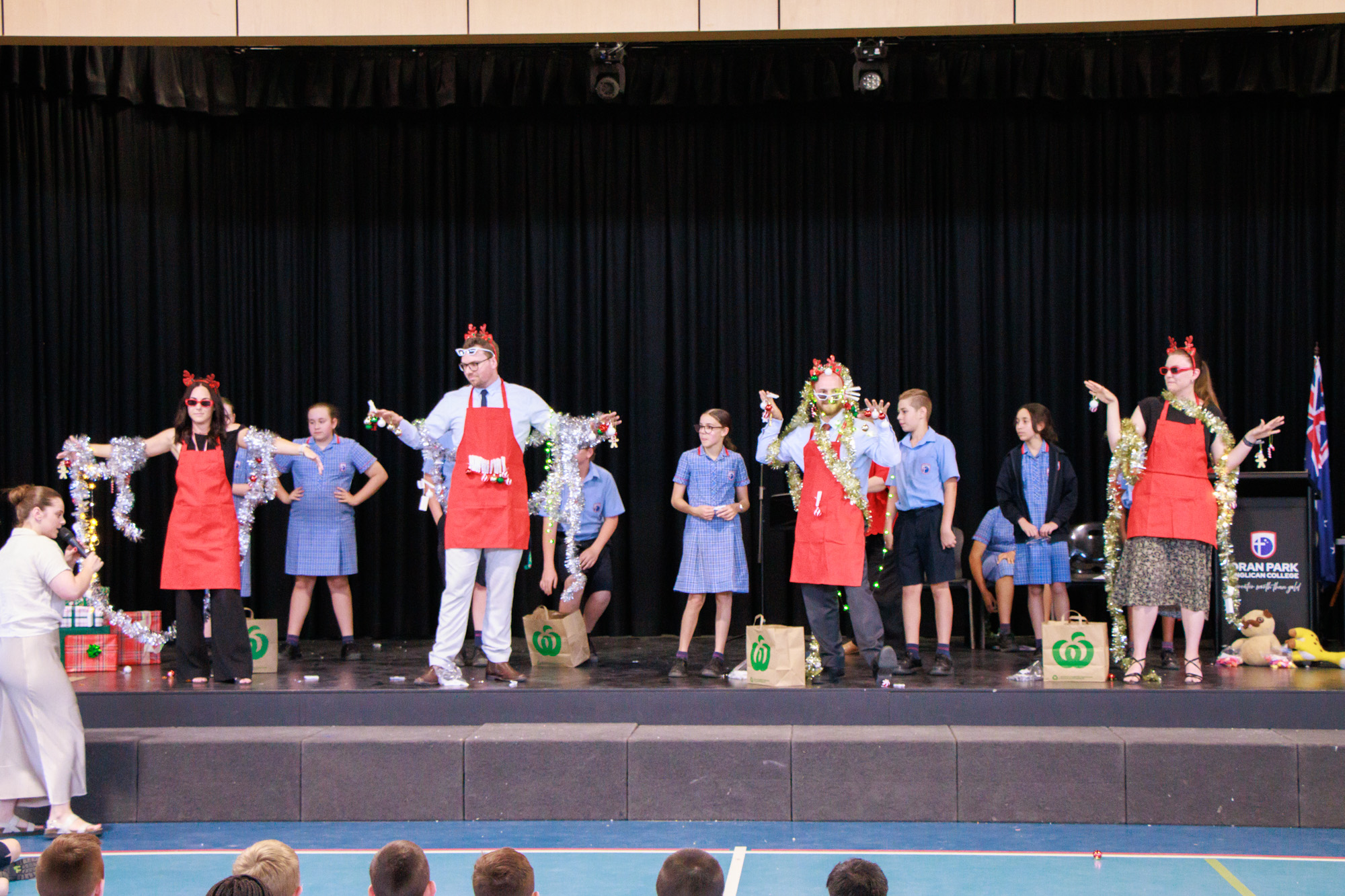 Our Year 6 Celebration Dinner is tonight (5th Dec) at 5:00pm in the MPH, where we will celebrate the end of their primary school journey. It is always an exciting night and marks the end of a number of years of learning at OPAC for some. Many others will continue their journey into Year 7 with us next year, and we look forward to seeing them return on their first day of Senior School. The Photos above feature the Year 6 teachers being decorated as Christmas trees for Year 6’s last Junior School Chapel.
