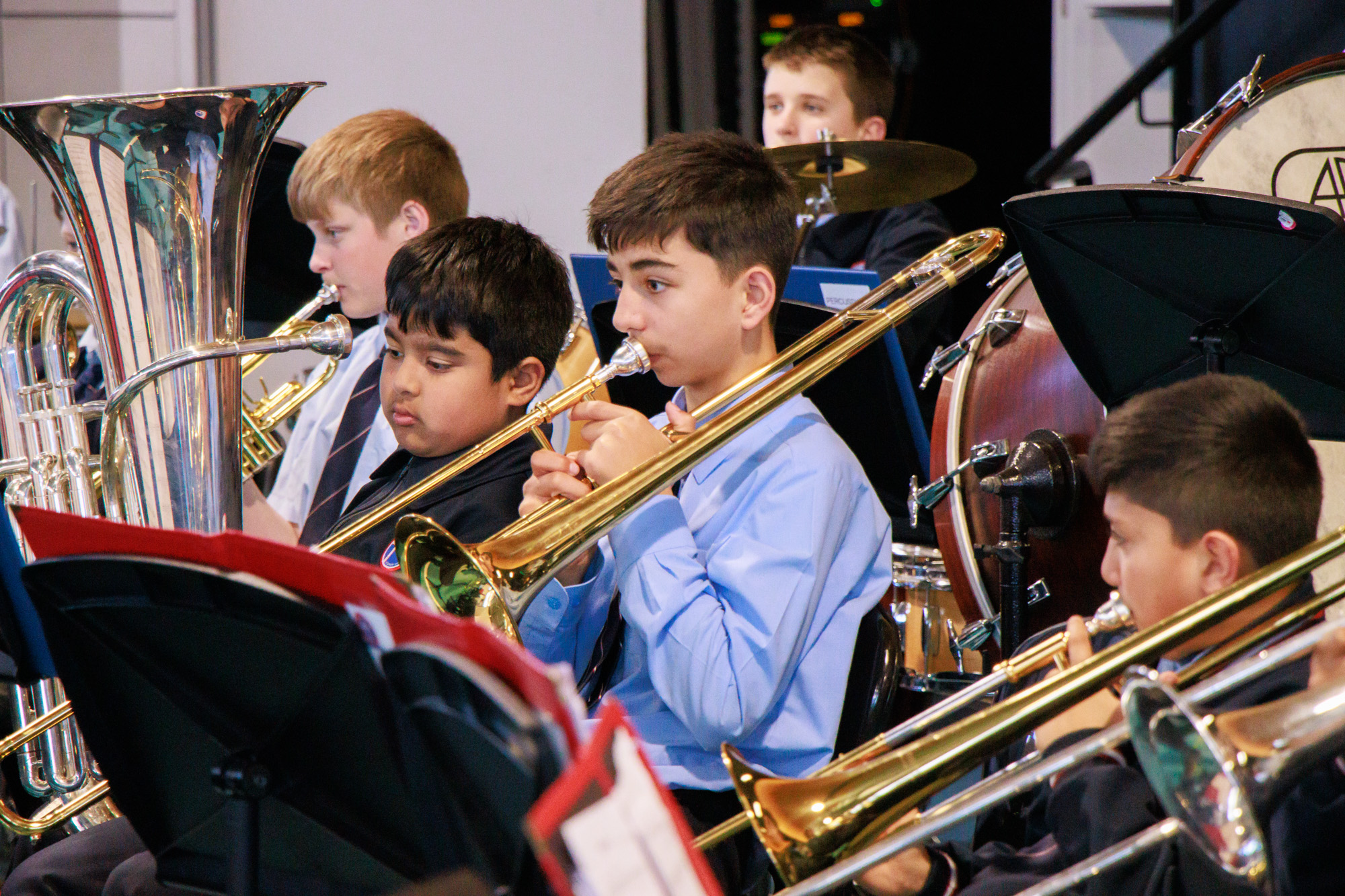 The day was filled with learning, laughter, and collaboration, as young musicians from these two schools worked together to create something truly special. The event concluded with a concert for family and friends and other students, which showcased the hard work and dedication of the bands. Each school’s performance was a great success, with every piece receiving enthusiastic applause from the audience.